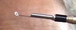 First I tried to use a tiny tool attached to my otoscope to hopefully reach in and drag it out myself. But it was too short to reach that far without pain and with a blocked view of what I was doing. So I quit that effort.