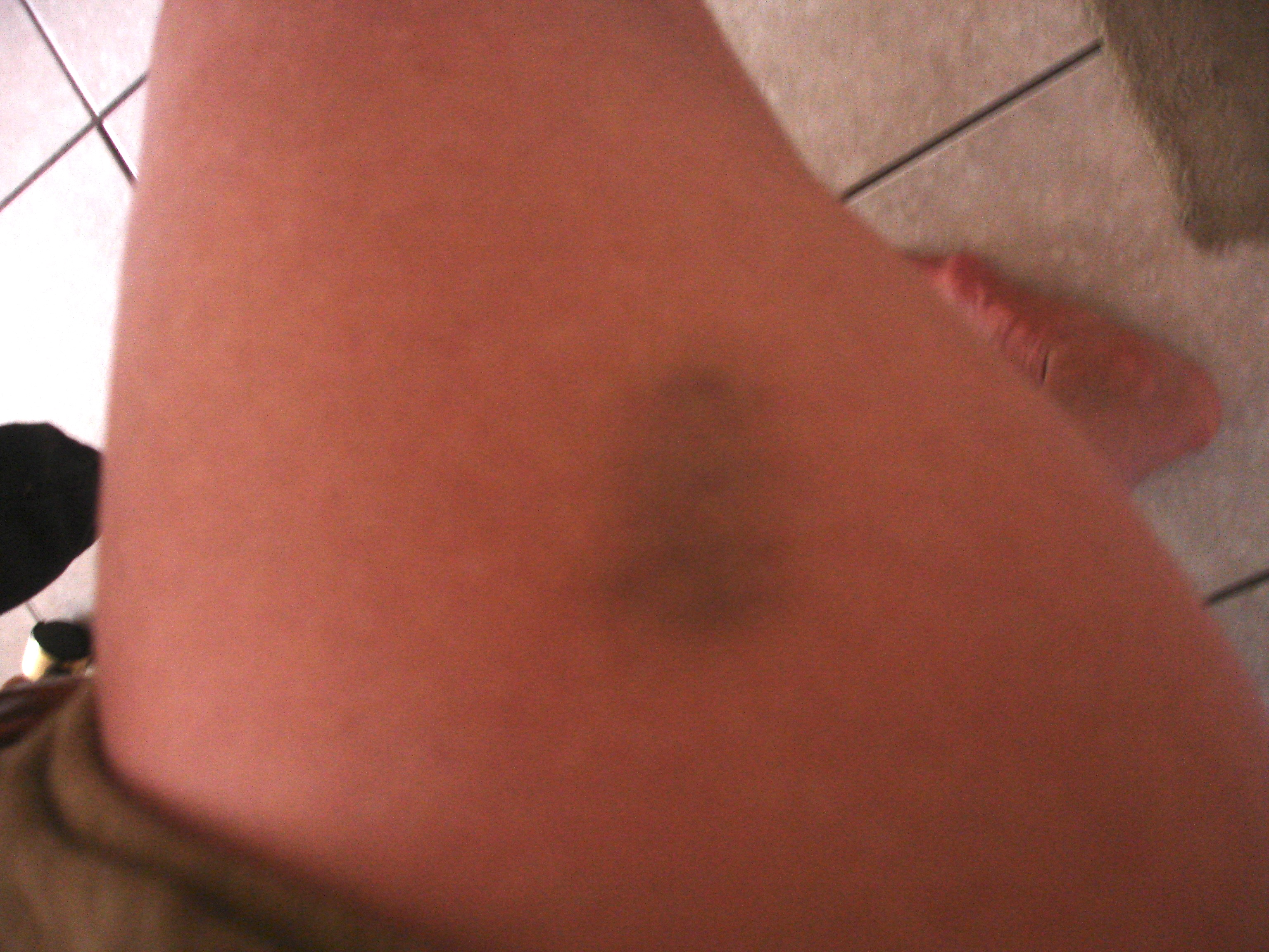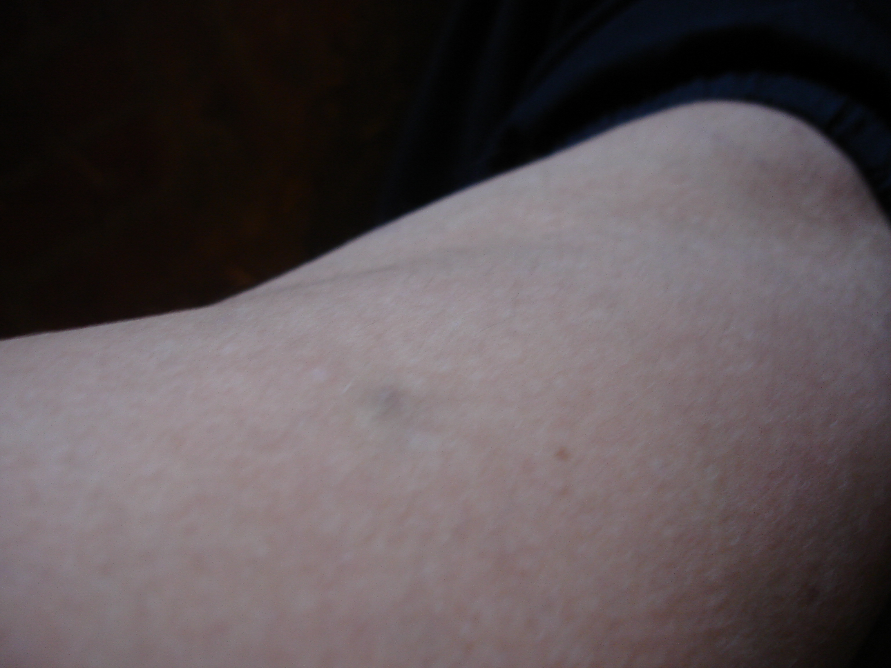 I took photos of weirdness on my body: February 4: hypodermic bruise on thigh;